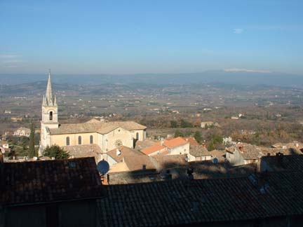 A church in my village namesake ... Bonnieux. Yep, that's Mt. Ventoux in the backgroud. See you are learning your Provençal landmarks!