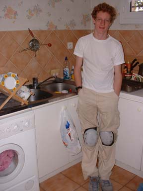 Robot Boy! He wears his knee pads faithfully since he hurt his knee last year. (You will never see that washing machine without clothes spinning in it <sigh>)