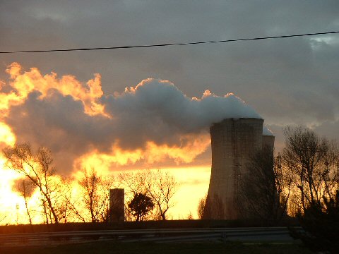 This is a nearby nuclear plant. France gets 73 percent of it's electricity from nuclear power. That is a higher percentage than any other country. The only country that comes close to that percentage is Sweden.