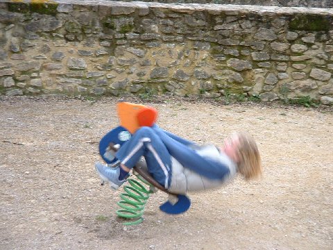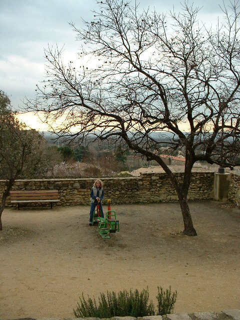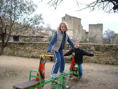 Here are some pictures from today's outing. We drove north and had a picnic in Bollène. It was cold, so part of the picnic was on the tailgate and part was sitting in the car with the heat blasting. The kids had a good time on the playground, though and the view from beside the 12th century church was nice.