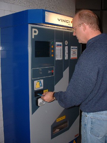 Yes, all good things must come to an end and often times cost money. Here is Jonathan paying for our parking before going to our car in the parking garage. You have 15 minutes to leave after paying at this machine. You have to insert your validated ticket in the machine at the exit and the arm will go up allowing you to exit. Most of the time we have to pay 3 to 4 euros... about 4 to 5 dollars. Convenient and free parking is something I always took forgranted before moving to France!