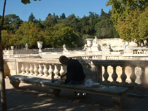 Nîmes (nEEm). We went here one day for a ................................ picnic, right! The amphitheatre here is roman and dates from the late 1st or early 2nd century. It is still used for bullfights just like the one in Arles.