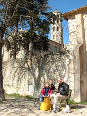 A picnic under the chestnut treets In the village Uzés. It's from here the Pont du Gard used to carry 4.4 million gallons of spring water per day to Nîmes. This is truffle country and every year, the village of Uzés comes together to make a HUGE truffle omelet ... I seems like I remember that they use 10,000 eggs!