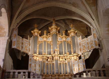 A beautiful 18th century organ in the church. The doors can close over the pipes.