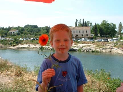 We went canoeing on the Gard river one day and stopped for ice cream before leaving. Guess what kind of ice cream Erik ate? (I still get lots of flowers :-)