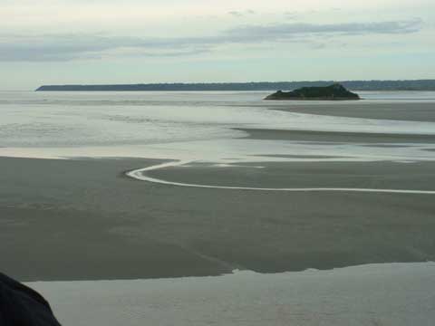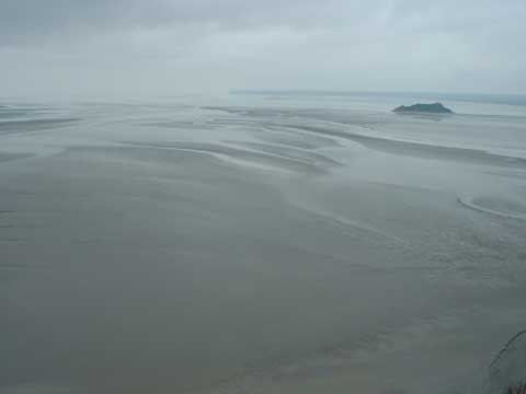 the tide is in, Mont St. Michel rises out of the water. The tide comes in at around