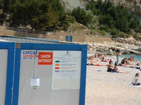 I'll leave you with a sign funny. These are the showers at the beach in Cassis. The red sign says 'Soap Prohibited'. I vote for 'Savon Obligatoire' <haha>
