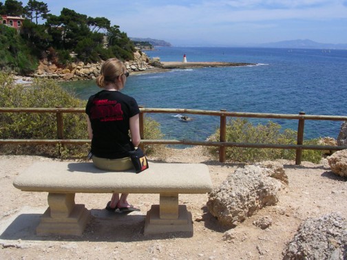 Christine and sailboats at Carry le Rouet, one of our favorite