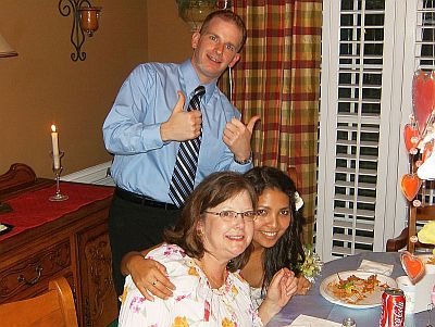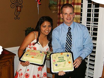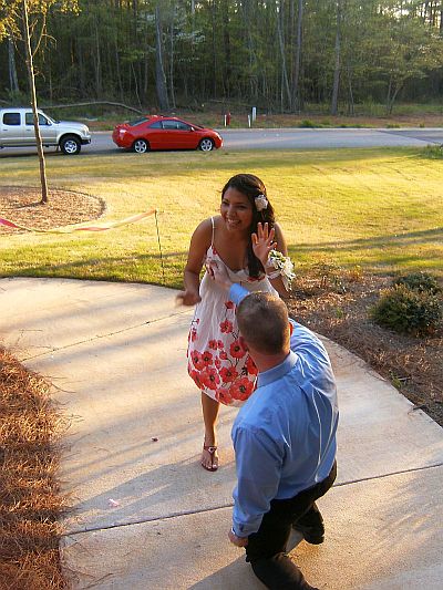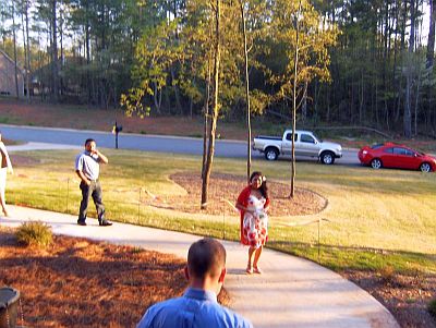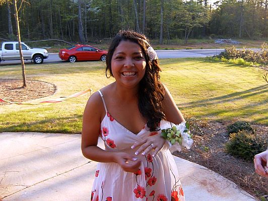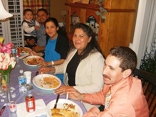 April 13, 2009 We're back! I realize it's been 4 years since we updated here but sometimes you just have to live life instead of write about it. Since returning from France, we have moved yet again, this time to be closer to family. It's been a real blessing to be back near parents and children, sisters and grandchildren. I'm always finding new reasons for being happy to be here. We recently paid the yearly bill for the website host, then yesterday I started wishing I could get some good pictures to my mother since her access is slow ... duh ... so, here we go. We'll start with the latest news that my mother was waiting to hear. We had a get-together at our house this past Saturday because my son Justin wanted to propose to his girlfriend Veronica. He had some very carefully laid plans. He invited us, Joanna and family and two of Veronica's sisters and their families to be present when Veronica got here. Justin stayed one step ahead of Veronica all day, working out the details so his plan would come together. He knows that her favorite flower is tulips so he brought several multi-colored bunches of tulips to decorate the house. He coordinated the details of the day with waitresses, managers, friends and family. He started her out (with her sister as an accomplice) early in the day on a treasure hunt of sorts where she would find clues to the next step at each destination. At the end of the day, Veronica ended up at our house in a new dress, well-fed, nails done and a corsage on her wrist. She looked fantastic. To back up a little, we bought some candy engagement rings (who knew!) at the party store. We joked about Justin using one of those to pop the question. No, no. He didn't think he wanted to do that. So Veronica arrives, and what does Justin pull out of his pocket but a candy ring. He dropped to one knee, held up the candy ring and asked Veronica if she would do his dirty laundry and clean his house and cook his meals every day for the rest of her life. We shouted for her to say no. She did -- way to go Veronica! Then Justin said something really sweet like he loved her and no matter what happened, he always wanted them to be together, he brought out the real deal and asked her to marry him. We all let out a big sigh when she said 'yes' right away. I think I had been more nervous all day than Justin! It was great to be involved. They haven't set a date for the wedding yet. We all went inside and ate dinner and got a little crazy (arriba!) and enjoyed each others' company. Justin requested italian food since it's Veronica's favorite so we had lasagna and breadsticks and Joanna brought a big salad. For dessert we had cake. So here are some pictures to help tell the story.