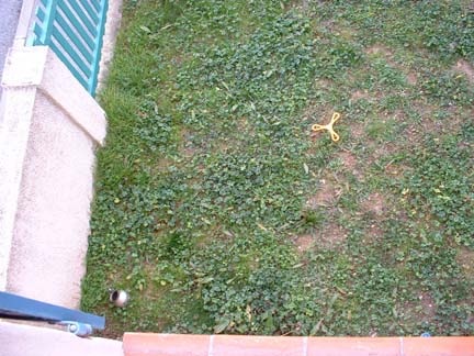 Wooden seat of a chair. Emily and Erik made a "Fruit et Legumes" sign out of it for their vegetable stand. They had big plans to buy fruit and vegetables from the village or Carrefour and sell them on the side of the road to make money. Little Capitalists. We finally convinced them they probably wouldn't turn a profit unless they bought the items wholesale or grew them themselves. Ditched it after a few weeks without a workable business plan.
