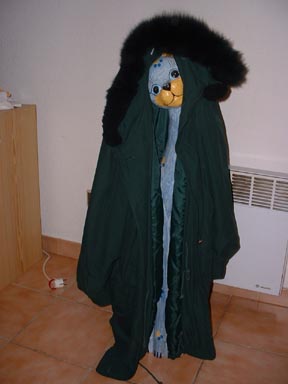 Best one yet! A coat with a hood and "fur" trim missing ONE button. My size! Washed it, kept it. Go Clochard!