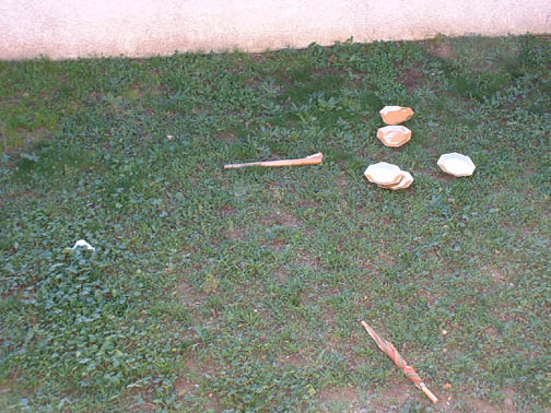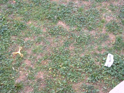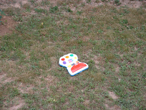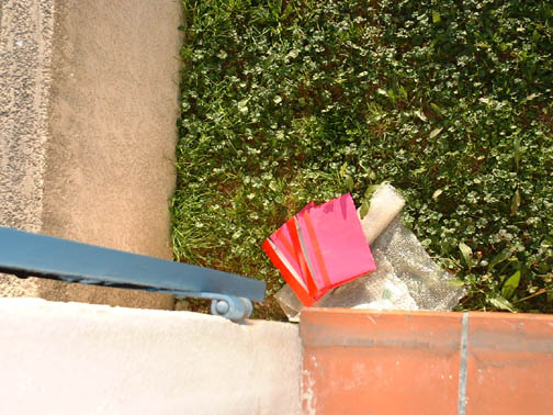 Otherwise known as 'what the dumpster-diver throws in our yard'. Ever since we moved here, we have received regular "deposits" from the dumpster thrown over our fence into our backyard. We used to think it was a homeless man who would go through the dumpsters at night and just toss whatever he rejected into our backyard.