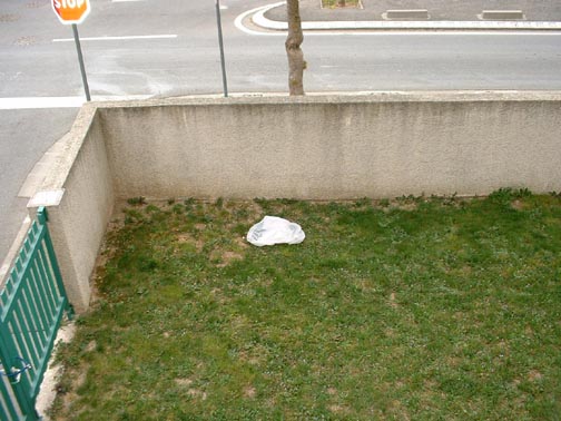 Am I right or is he just a lazy clochard who takes things out of the dumpster, peruses it and throws the junk in our yard that he doesn't want, as in 'here, you throw this away again'?