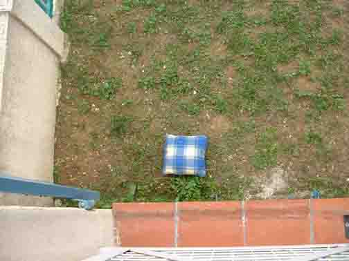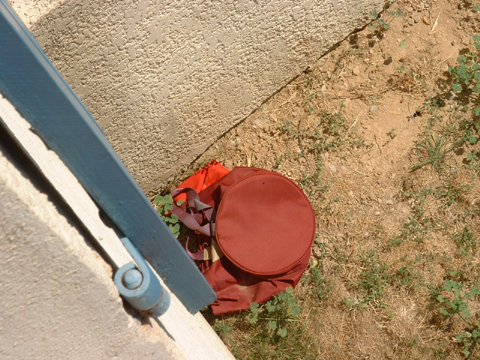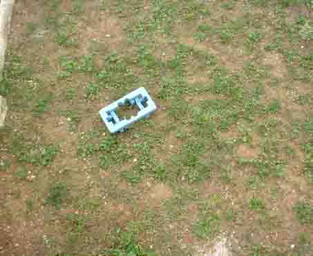 A blue piece of packing styrofoam. Kept it a couple of days. Would I ever find anything exactly that size? Ditched it.